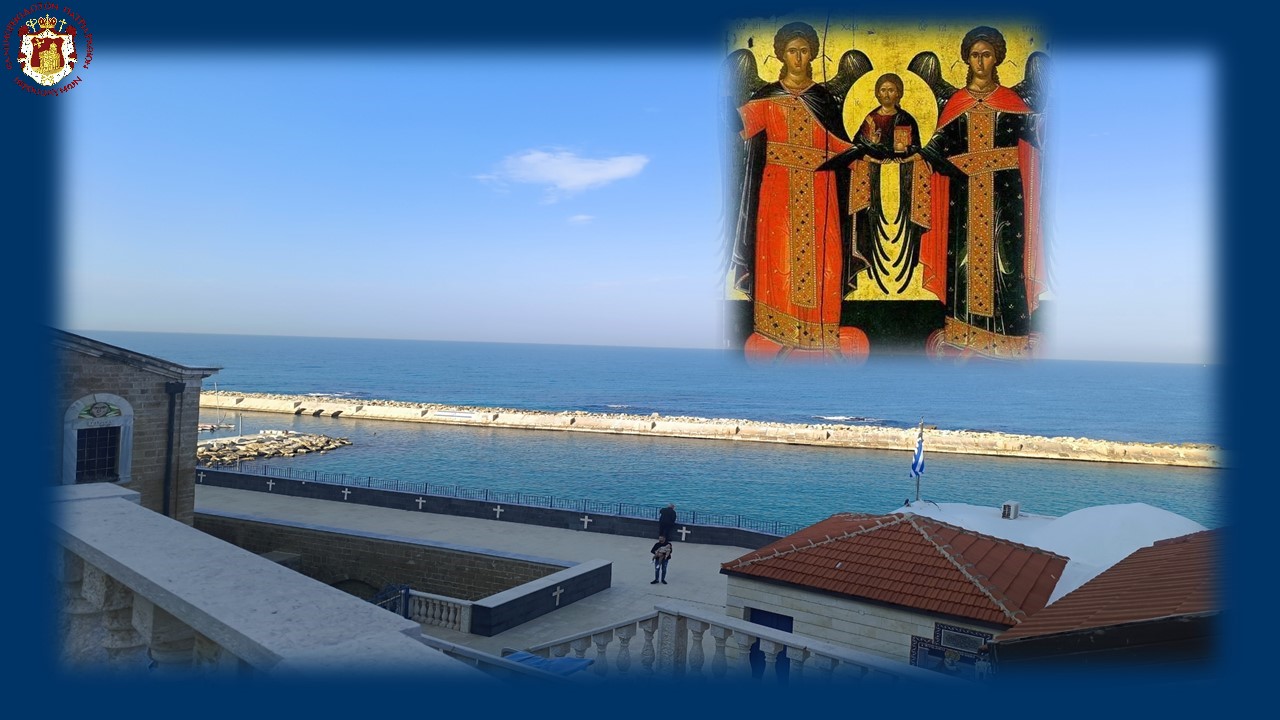The holy Church of Jerusalem rejoices and is glad on the feast of the Holy Archangels in their Holy Monastery in your historic city of Yaffo. And this, is because the Commander-in-Chief of the Angelic Heavenly Orders, Michael, brought us all together to give thanks to the philanthropic God.