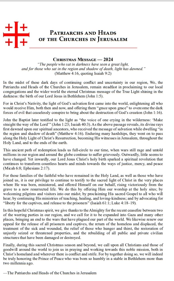 On Wednesday, November 28/ December 11, 2024, the Heads of the Christian Churches of Jerusalem held a meeting at the Patriarchate under H.H.B. our Father and Patriarch of Jerusalem Theophilos III.