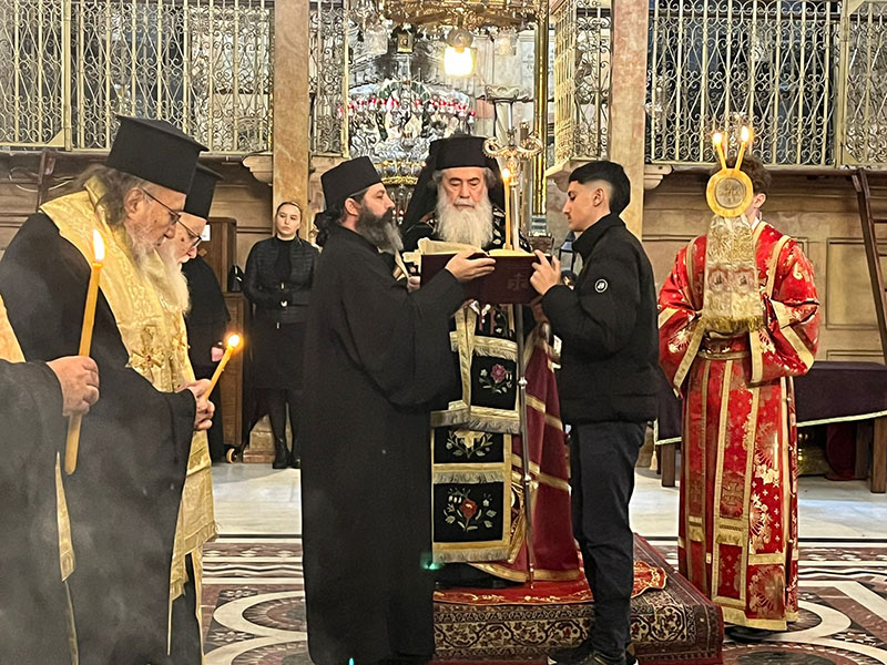 On Sunday before the Nativity of Christ, December 18/31, 2023 the annual memorial service of the Holy Sepulchre Fathers, Patriarchs, Bishops, Priests, Hieromonks, monks and nuns was held at the Church of the Holy Sepulchre. The Liturgy was officiated by His Eminence Archbishop Dimitrios of Lydda with co-celebrants the Archimandrites Philoumenos, Dionysios, Claudios, Christodoulos, Amphilochios, Stephen and Hierodeacon Eulogios. Hierodeacon Simeon delivered the chanting as members of the Church of Jerusalem attended the service.