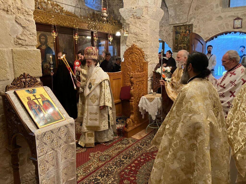 In honour of Saint Demetrios, Vespers in the evening and the Divine Liturgy in the morning were celebrated in his chapel, located within the Patriarchate, presided over by His Eminence Archbishop Demetrios of Lydda, with con-celebrants the Archimandrites Alexios, Makarios, Claudios, the of Priests Nektarios and Georgios Baramki, the Hierodeacons Simeon and Eulogios. The chanting was delivered by the students of the Patriarchal School of Sion under Mr Eustathios Tsoumanis, as the service was attended by many believers from Jerusalem and others and representatives of the Greek Consulate General in Jerusalem, Mrs Konstantina Gyftou and Mrs Athanasia Maliou.
